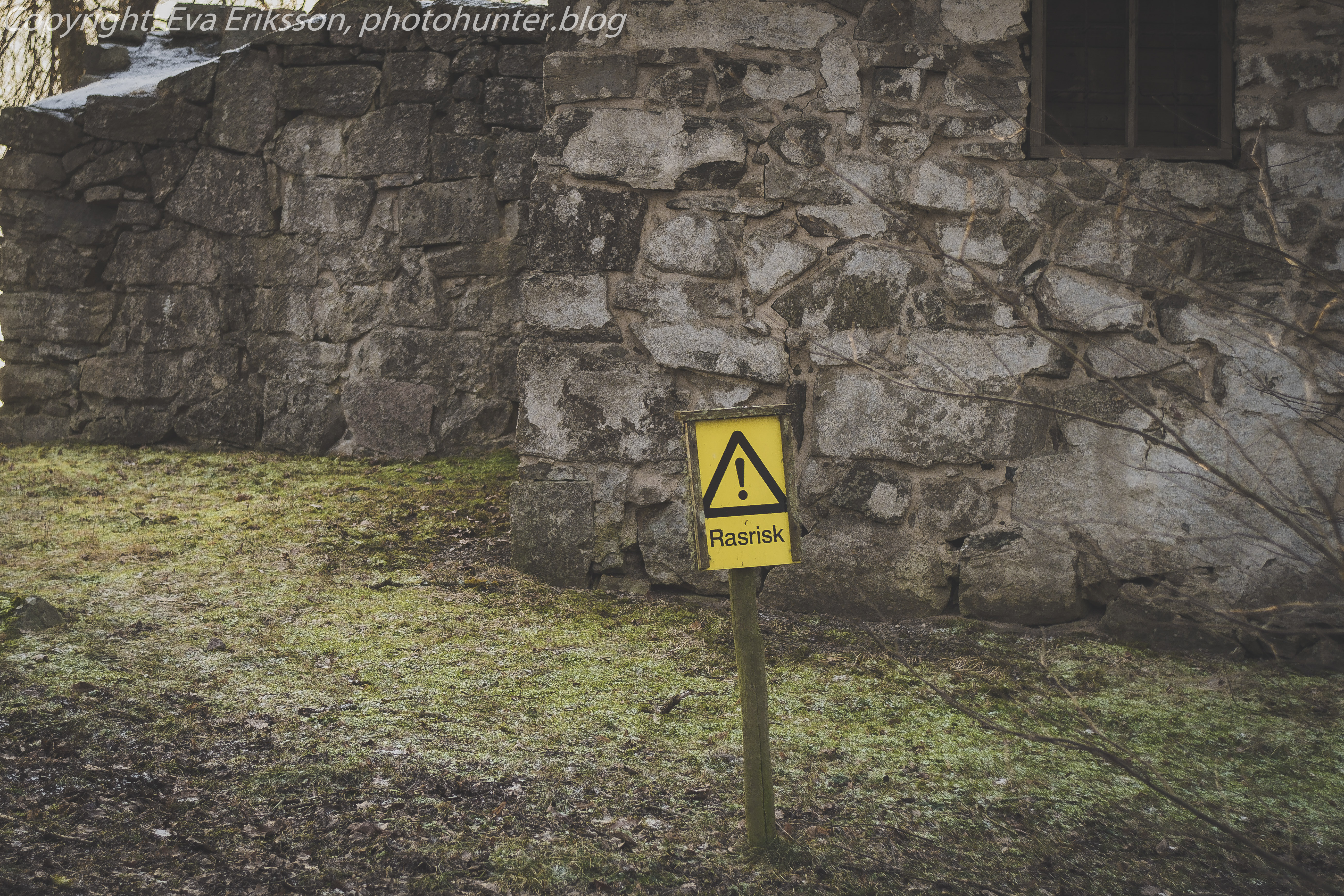 Jag hade aldrig varit här innan och hade förväntat mig att ruinen skulle vara mer synlig från vägen, så jag irrade omkring ett tag innan jag såg några stenmurar skymta bakom en av villagårdarna. Jag kände spänning och glädje när jag väl hittade den och OJ vad vacker ruinen är! Och vad lyxigt för de som bor på en av gårdarna alldeles intill ruinen! När man besöker ruinen får man vara lite uppmärksam då det förekommer rasrisk.