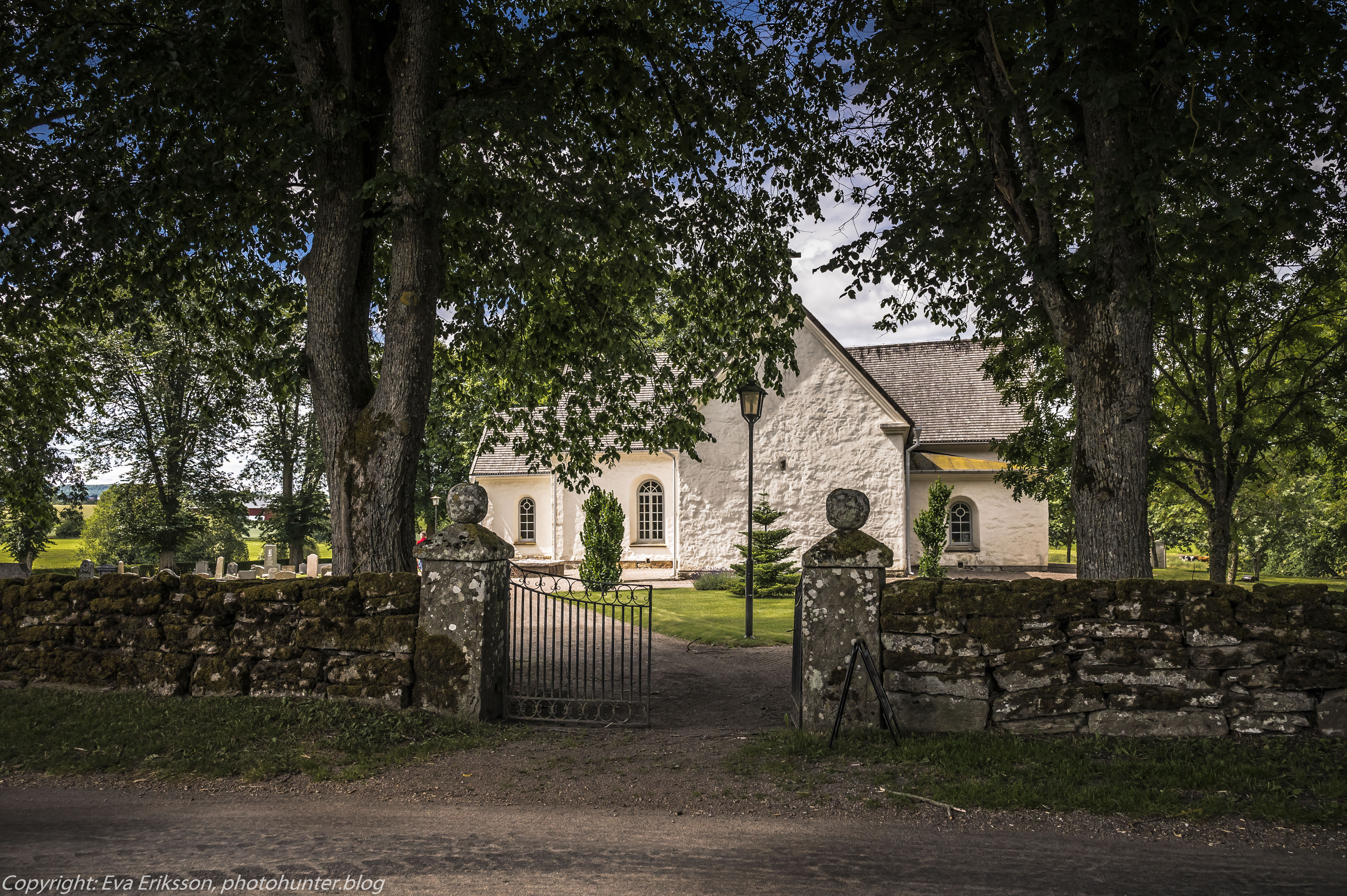 Den vackra stenmuren som omger kyrkan