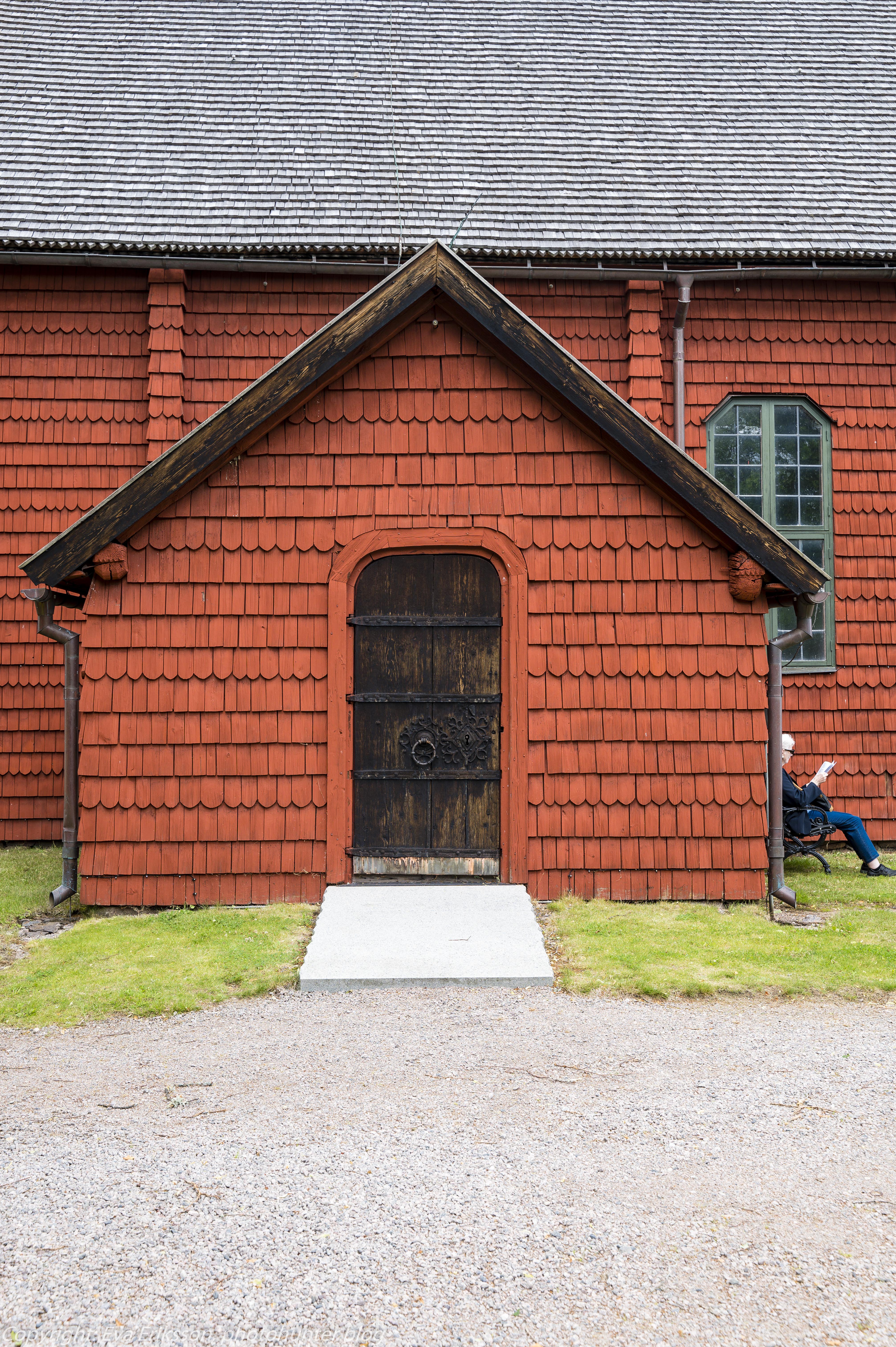 På vägen till kyrkan, ca 1 kilometers promenad från busshållplatsen, så går man förbi några andra fina gamla byggnader. Bland annat församlingshemmet som ligger i någon form av äldre byggnad. Jag har inte kunnat hitta någon information om byggnaden alls, men den ser intressant ut. Även den före detta prästgården som ligger bredvid kyrkan med sin gamla trädgårdsgrind som inte längre används. Vi (jag och min mamma) passerade även en häftig timmerbyggnad som enligt kyrkvaktmästaren vid kyrkan har agerat som härbärge en gång i tiden. Den information jag kunde hitta om den byggnaden är att det är en loftbod som 1945 flyttades från Delebäck, Hova till Älgarås. Det har varit bostad och verkstad åt Thure Elgåsen som var Tivedenkännare, konsthantverkare, scoutledare och hembygdsföreningsman. Han föddes 1910 och dog 1985. På området ligger också en restaurang som såg ganska cool och ruffig ut. Vi hade tänkt gå in där och kanske käka något och låna toalett , men efter lite googling så visade det sig att den hade stängt igen för gott bara ett par månader innan.